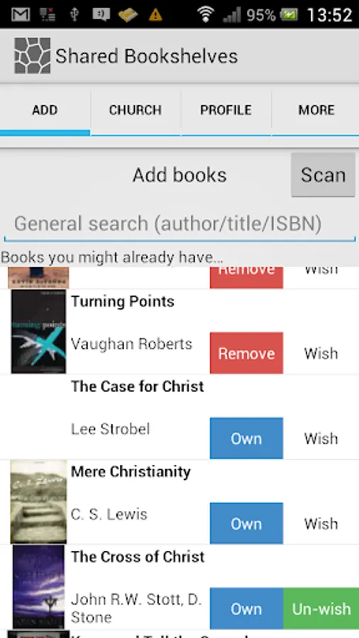 See what Christian books other members of your church family own and have on their wishlist so you can lend and borrow them. This app makes it easy to create an inter-church virtual library.
