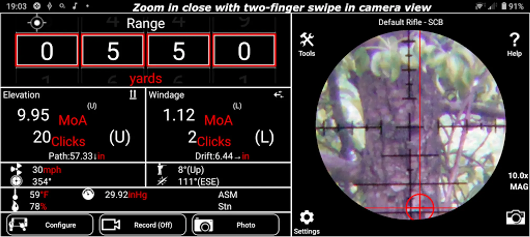 You can utilise magnification provided within the app, as opposed to scope magnification, to maintain accuracy and overcome any scope magnification limits, video-record your shots (including audio), and take still photographs.