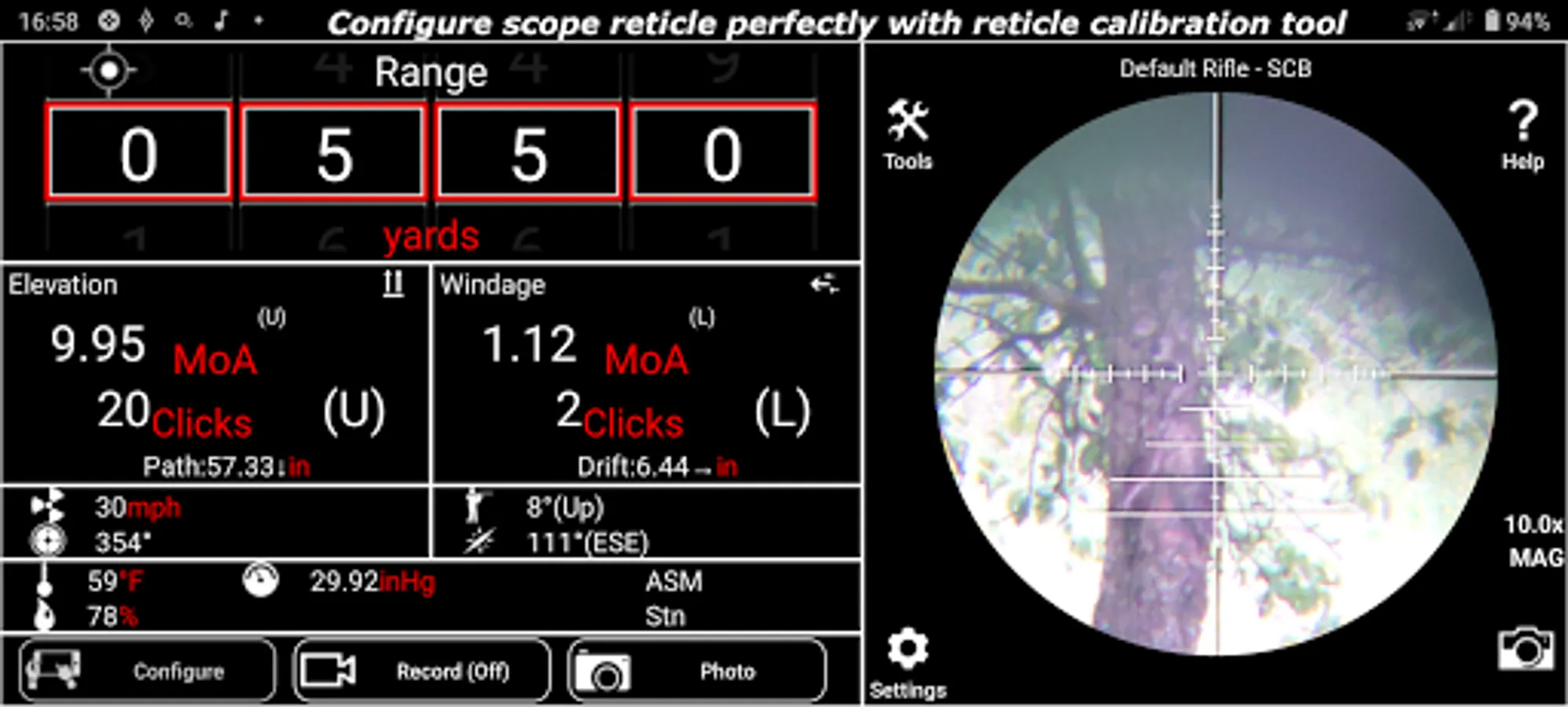 Map your riflescope reticle to the app’s internal Virtual Reticle™ and get a precise aiming indicator to guide you for that perfect unmissable shot, calculated to precision using the app’s Point Mass External Ballistics calculator.