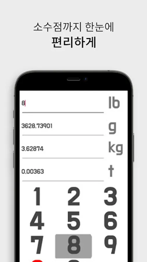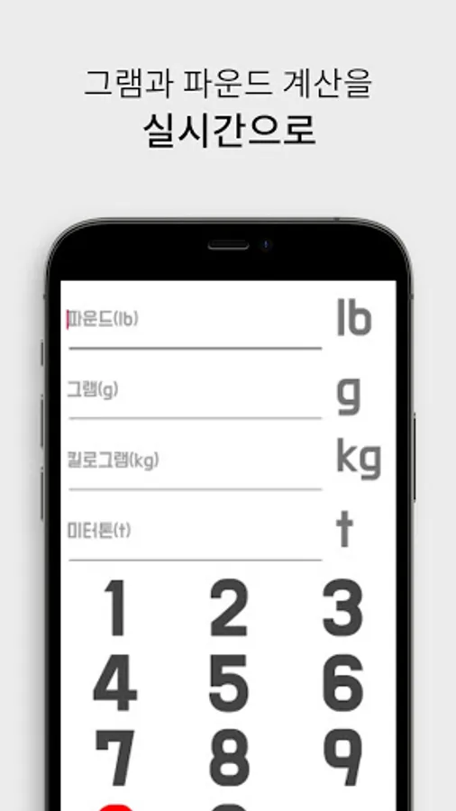 After launching the app, enter the pound or kilogram or gram or metric ton using the lower keypad.