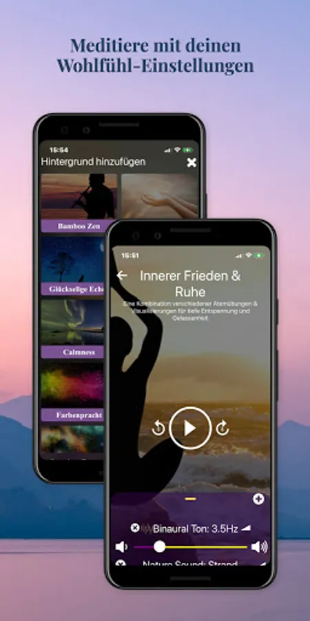 Go on a relaxing dream journey with 3D tones, fall into a deep, restful sleep with ease, achieve your goals with innovative courses... MYditation is ideal for anyone who wants to learn to meditate, deepen their meditations and adapt them individually to their needs .