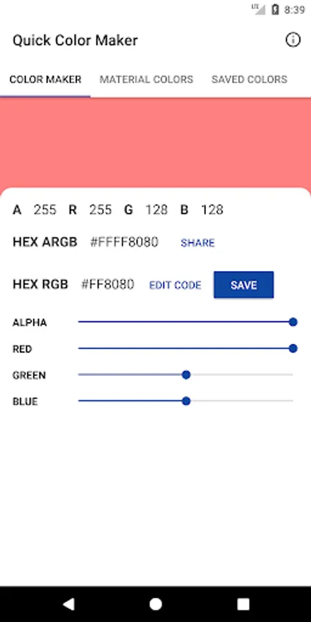 1. Create and pick custom color shades using intuitive RGB Color Mixer.