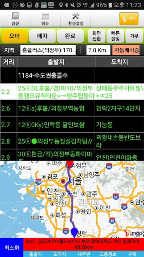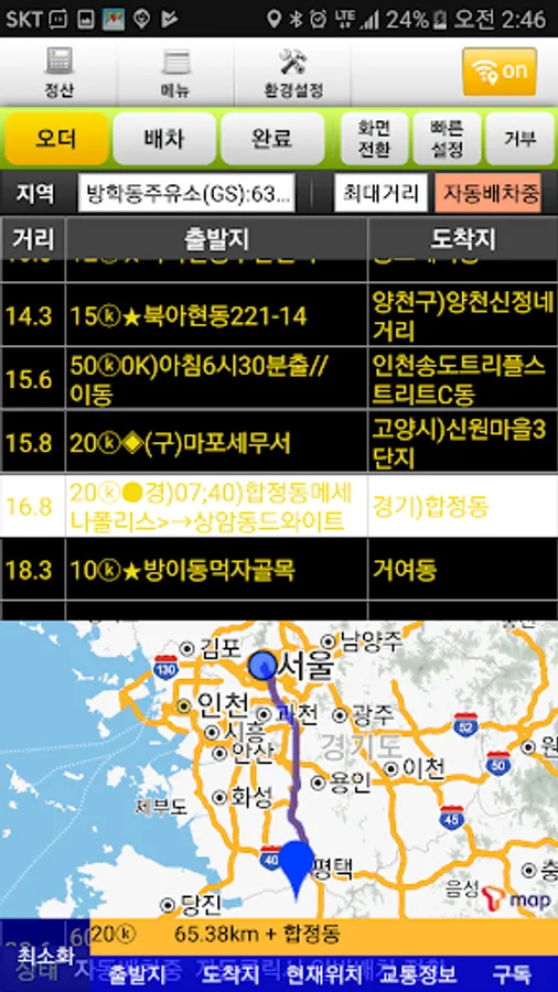 It detects the order information such as the origin and destination and the location on the map
