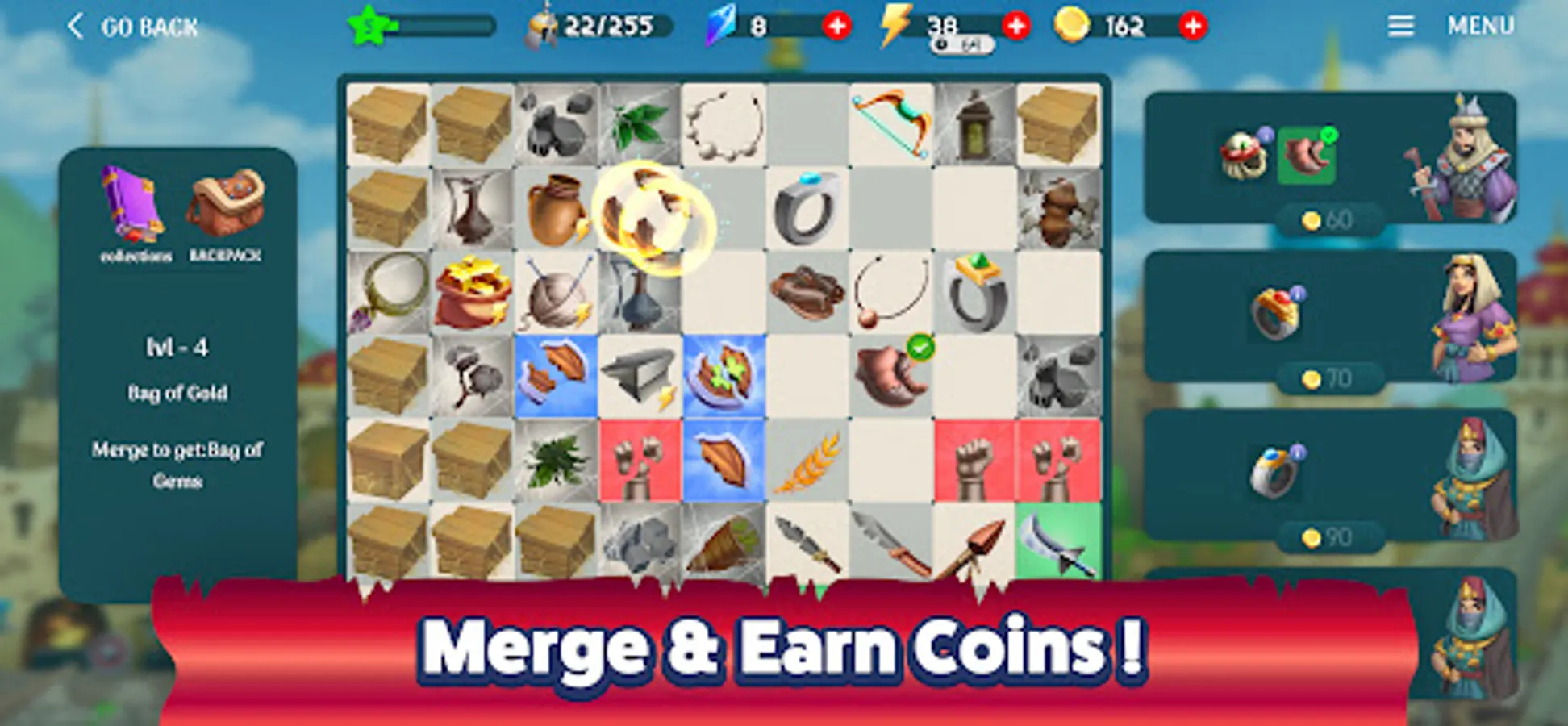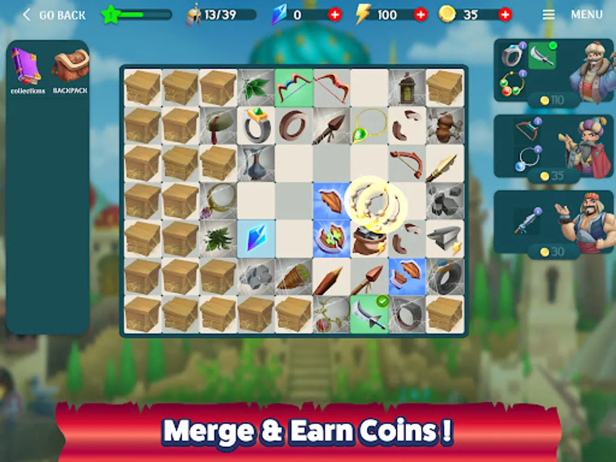 With hundreds of challenging levels and puzzles, merge objects to create powerful weapons, exquisite jewelry, stylish clothing, and so much more. Sell your goods at the souk, earn gold and train soldiers at the barracks. Fight your enemies and discover hidden treasure chests, loaded with boosters, coins, and new spawners that will help you in your quest for supremacy.