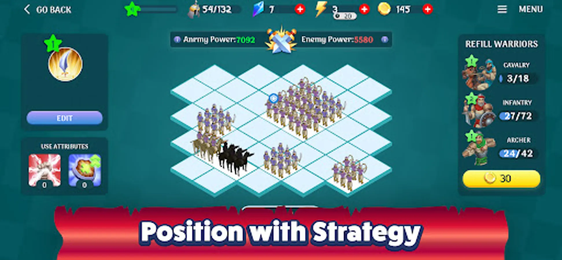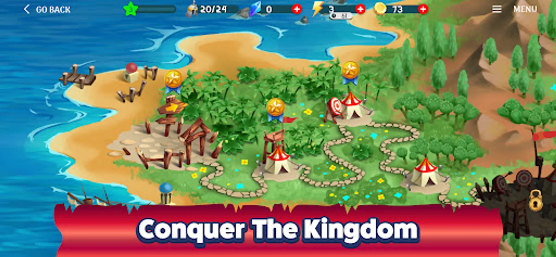 Challenge yourself to daily puzzle quests, expand your kingdom and grow your army of soldiers.