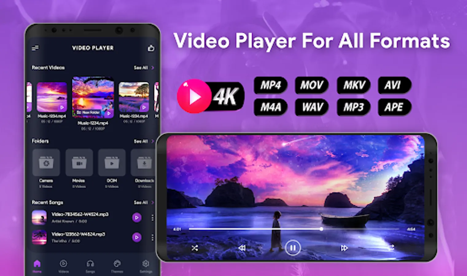 Video player 📽️ (mp3 player) All Format for Android supports all video formats, 4K/ultra HD video files, is a best video player for android with advanced hardware acceleration, easy using, stylish design, smart playback, and also keeps your private video from being deleted or seen when people use your device. This HD video player supports all video formats like Full HD, HD, Ultra HD video files,4K. Video Player is a powerful mp4 player to play songs and videos. With the advanced hardware acceleration, subtitles and built-in music player, it can accomplish all your media player needs and gives you the best playback experience to enjoy your videos and songs. 🎉
