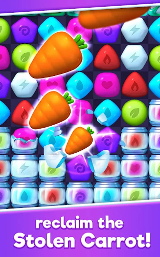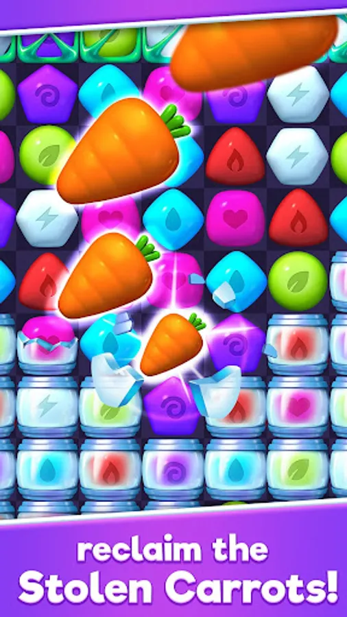 Solve the match 3 puzzles to defeat the cute but crafty thieves, until regain the stolen carrots!