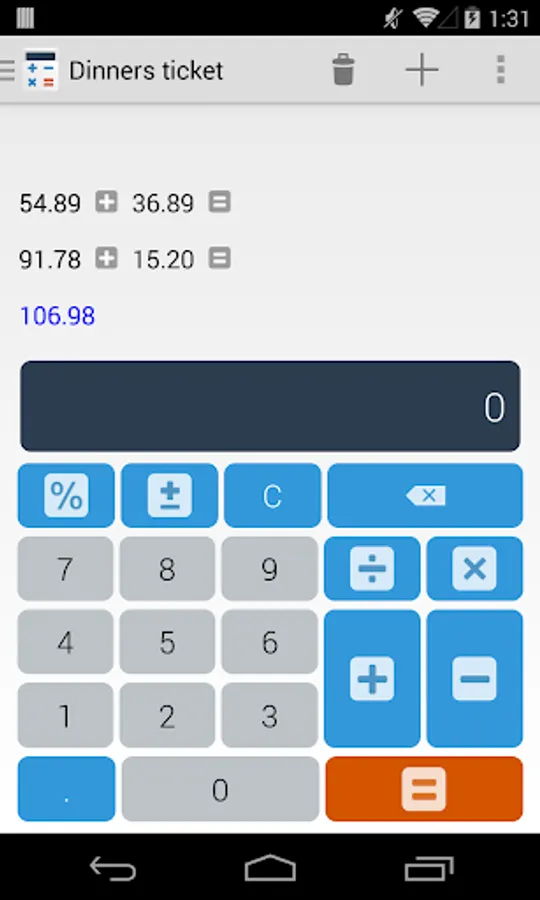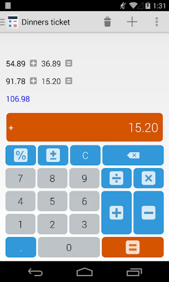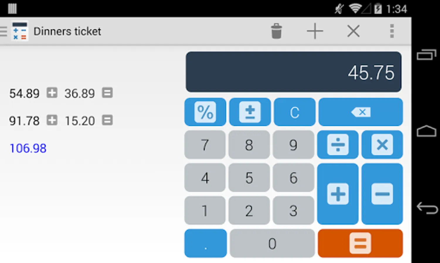 It's multi calculator in one calculator! It allows you to open different accounts to not miss any data. So you can calculate several things at once.