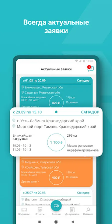- Receive PUSH notifications of new applications for grain carriers and tank trucks