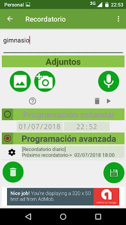Daily repetition: ideal to remind events on certain days, example, go to gym, attend a course, outings with friends.