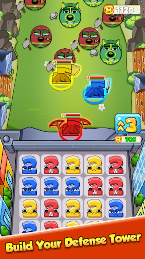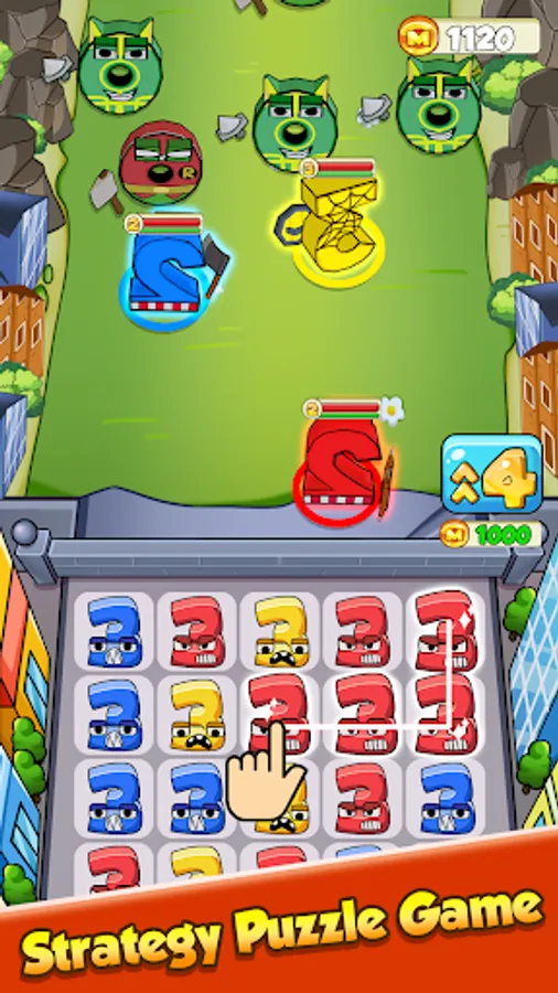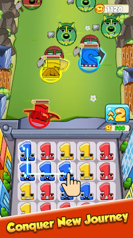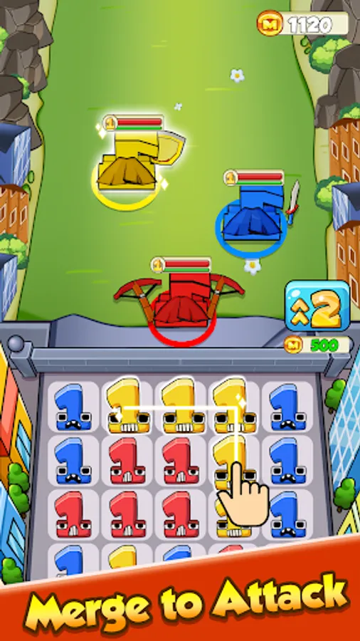 Ingenuity is necessary in this merge game. Solve puzzle by merge the super heroes same color and shape at the magic board below and build your defense tower. You need to maintain and enhance the power of your defense town against surprise attacks from the enemy.