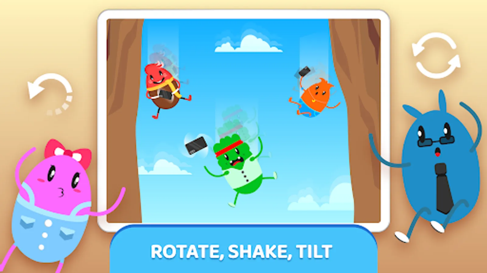 - Shake, tilt, and rotate your phone to move the bean man avoid obstacles along the way.