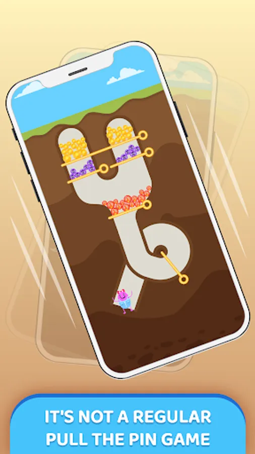 The pin pull game is so simple to start, but if you want to be a winner, you need intelligence to pull the pin and prevent obstacles from impacting the bean. You will receive coins when you advance to the next level. Earn coins by completed the mission as much as possible, and at higher levels you can buy useful items to help the bean pass across obstacles. The mission will fail when the bean is killed by obstacles, and you will need to play again. That's why you need to think before you pull the pin out or shake, rotate, and tilt your phone.