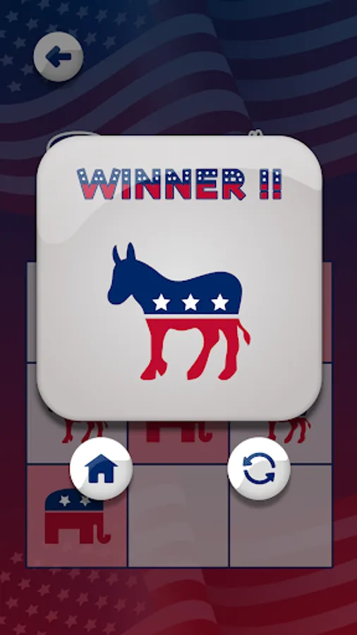 - While you are playing this Election Game USA and if any player succeeds in placing three of their signs in a horizontal, vertical or diagonal row then he/she wins the election game USA round and the overall score for the winning political party sign is increased in the election game USA Leaderboard.
