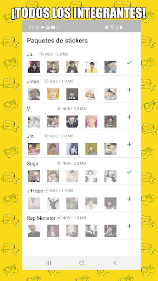 Don't wait any longer to have cool, unique, funny and animated stickers of Jungkook, Jimin, V, Jin, Suga, J-Hope, RM and put Add!