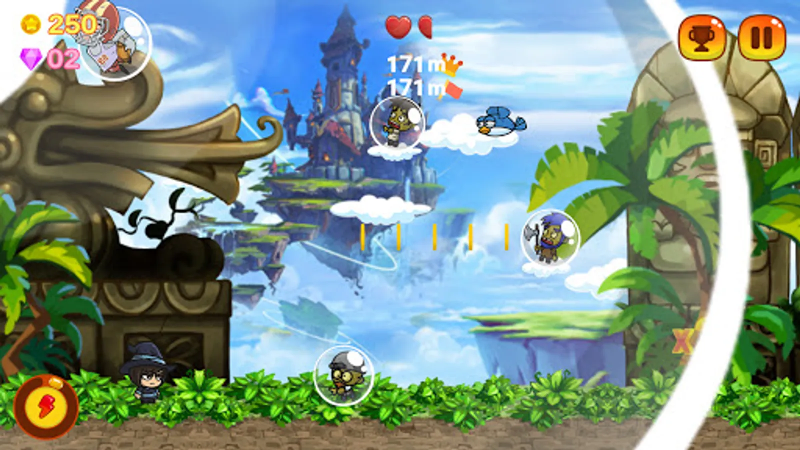 Choose your champion, hero or wizard that best fit to your skills, some characters came from different worlds and each character have different special attack, stay in the air until you special attack load.