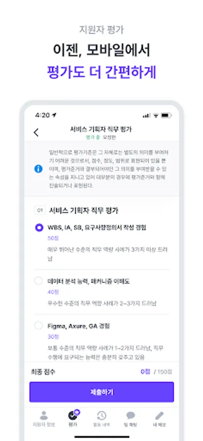 ・ 평가표 생성을 제외한 모든 웹의 평가 기능이 모바일에서도 가능해요.