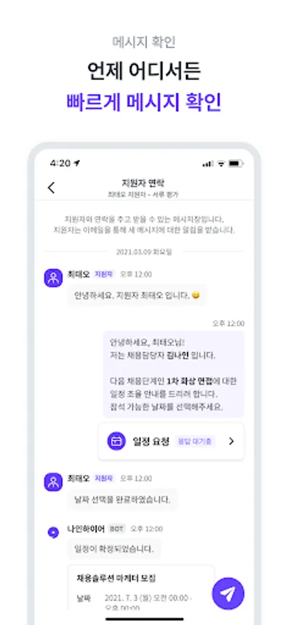 언제 어디서든 실시간을 지원자를 관리하고