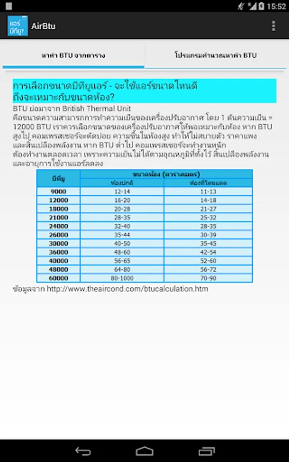 This program can determine the BTU will be 2 types.