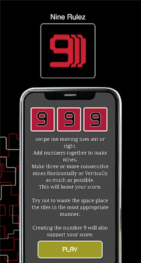 You may utilize the space given to make more consecutive nines so that those nines will be blasted and clear up the space to play. Minimum three nines will be required in a row or column to be blasted. You may also think of some patterns of 9s to get achievement badges of Nine Rulez.