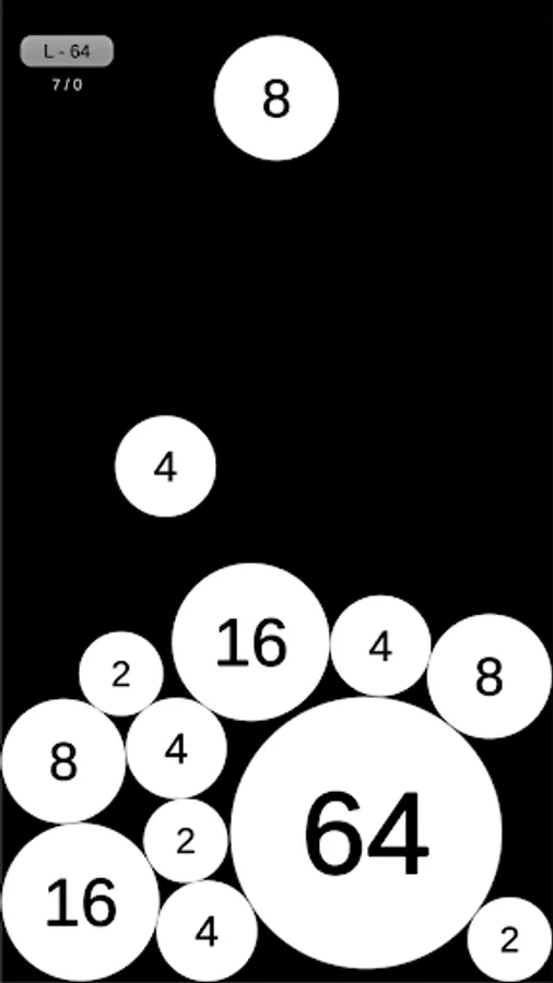 Balls with different number fall from top of screen. Control where they fall, because when two balls with same number collide each other, they merge and become a bigger ball, and the number is multiplied by 2. But if the numbers are not equal, the balls just pile up.