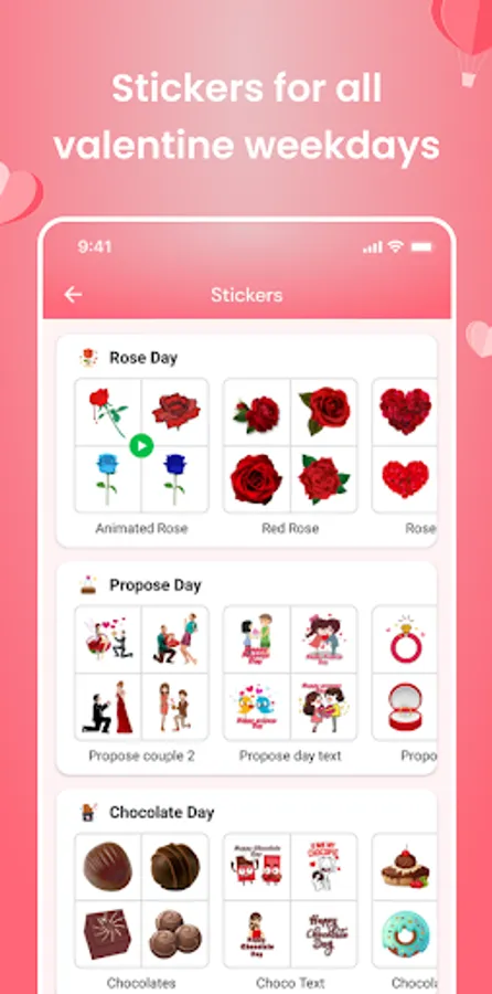 ❤ Stickers for Valentines day, Rose day, Kiss day, Hug day, Chocolate day, Promise day, Propose day, Teddy day