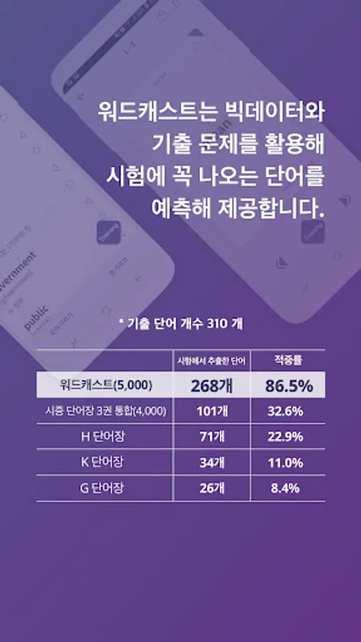 Average hit rate 86%! There is only one wordcast with a data-proven first-rate hit word vocabulary. Wordcast was created by a big data analysis company, an English learning expert, and an education company.