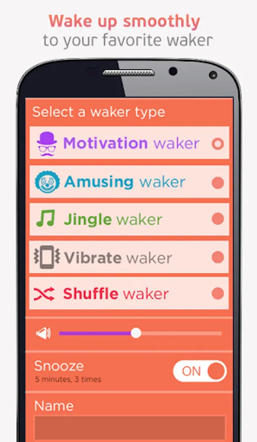 Waker has hundreds of recordings from multiple categories to choose from: Motivation Waker, Amusing Waker, and Jingle Waker.