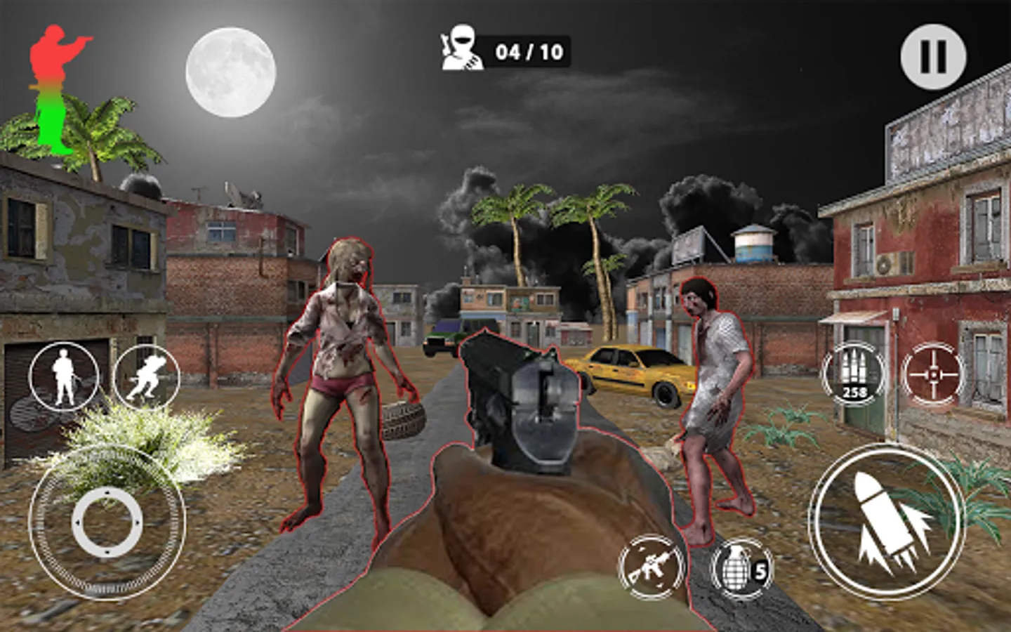 A dangerous killing virus has mutated humans into walking dead zombies 3d. Feel the action and survive this apocalypse horror in one of the best free zombie hunter shooting games. this lethal virus spread out causing zombies outbreaks and humans are in immediate danger of a gory death. Shoot zombie apocalypse with perfect zombie shoot. Hold trigger of your gun and kill all left behind Dead effect shoot zombies. A very harmful virus has spread all over the city and humans are turning into zombie 2022.⏳