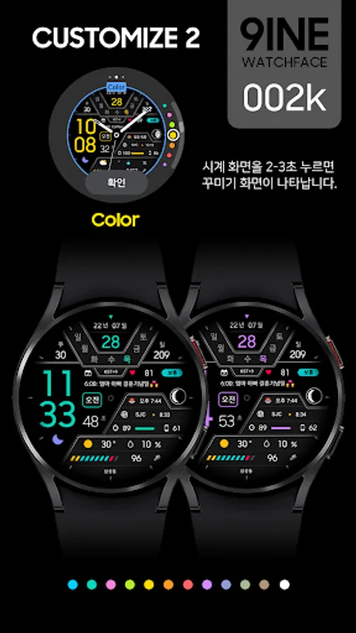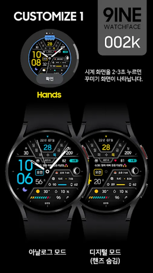 워치의 화면을 길게 눌러서 워치페이스의 설치 여부를 확인해 주세요. 10분이 지나도 워치페이스가 설치되지 않는 경우 플레이 스토어 웹 또는 시계에서 직접 설치해주세요.