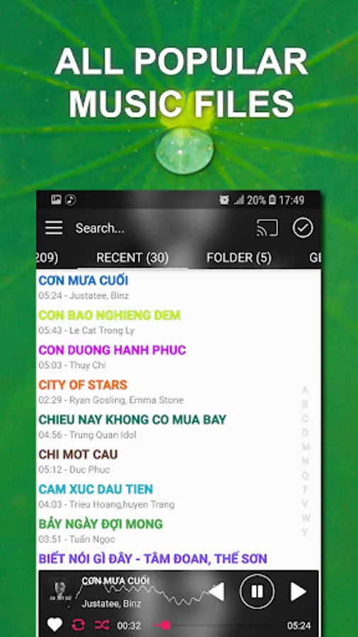 ★ Smart songs manager: playlists, artists, albums, recent, folders, genres, mini tracks