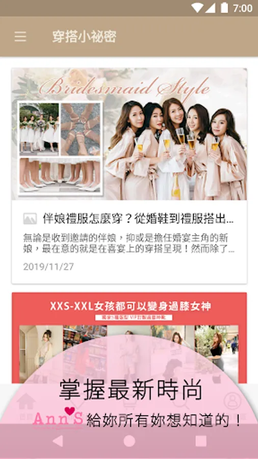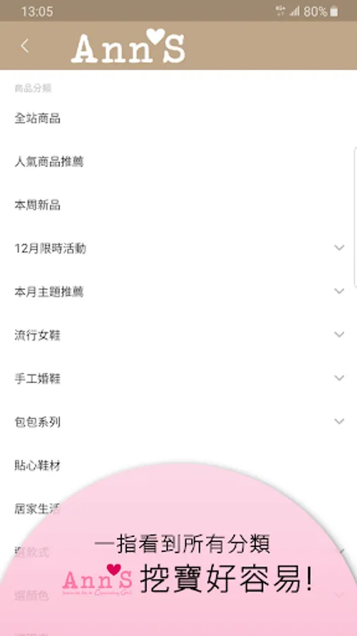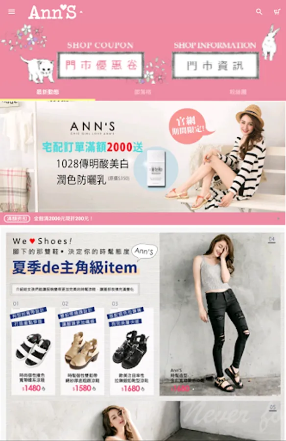 想掌握時下最流行美鞋穿搭資訊,快下載Ann'S超人氣女鞋旗艦APP,超清析的美鞋大圖,讓你用手機隨意逛,都能快速找到令你穿上瞬間,就想炫耀不已的憧憬美鞋;Ann'S不定時推出限定優惠,APP會自動推播訊息,讓你不再錯過任何好康活動,無論是below or over 25、可愛女孩或是成熟小女人、個性與甜美、街頭與優雅、直率與內斂、純真與性感,都能在Ann'S這找到專屬妳的鞋款。