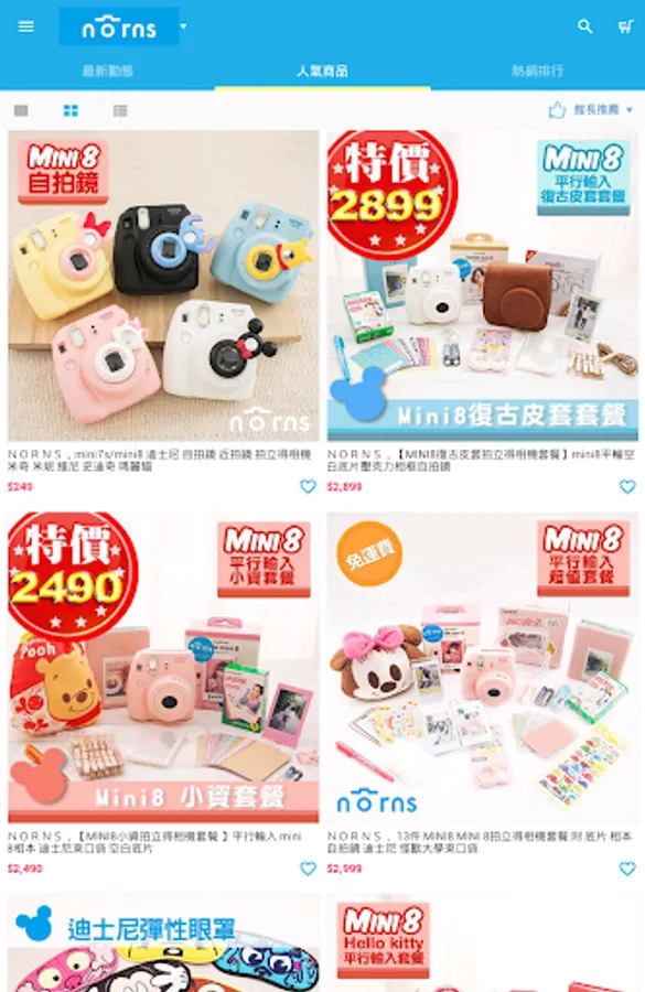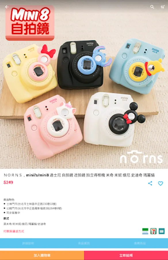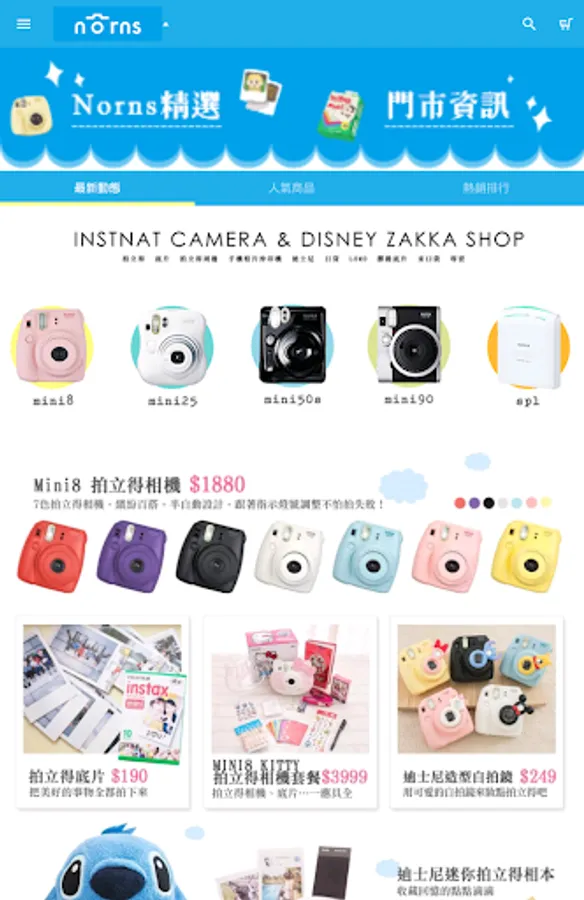 Norns販售最新、最齊全拍立得相機&配件、LOMO、各式迪士尼/卡通精品。
