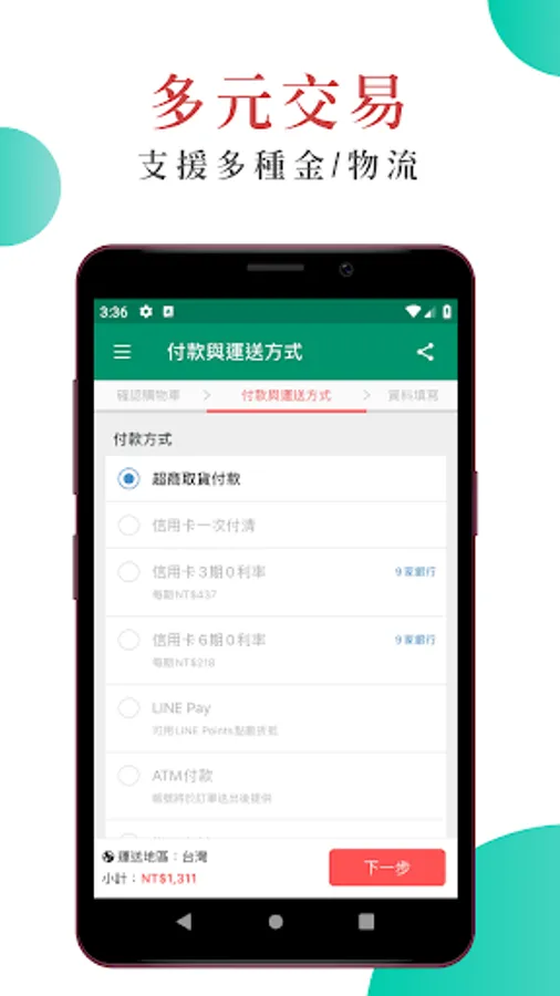 3. 多元付款:信用卡(可分期)、APPLE PAY、LINE PAY、街口支付、ATM轉帳、超取付款...等
