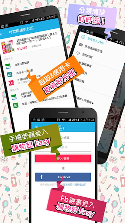 ■購物超便利:一鍵購物好輕鬆,用Facebook帳號或手機號碼就可輕鬆加入會員,365天24小時購物不打烊。