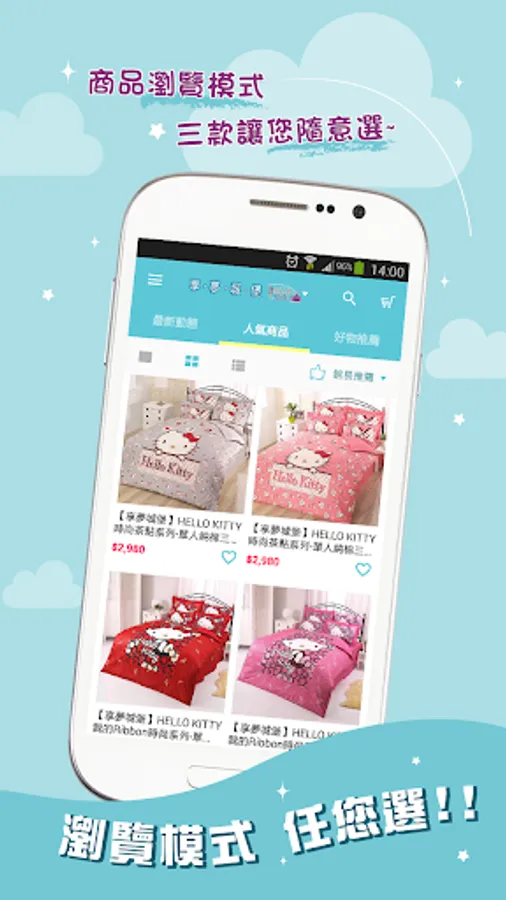 .關鍵字快速搜尋功能,三種商品瀏覽模式隨你選
