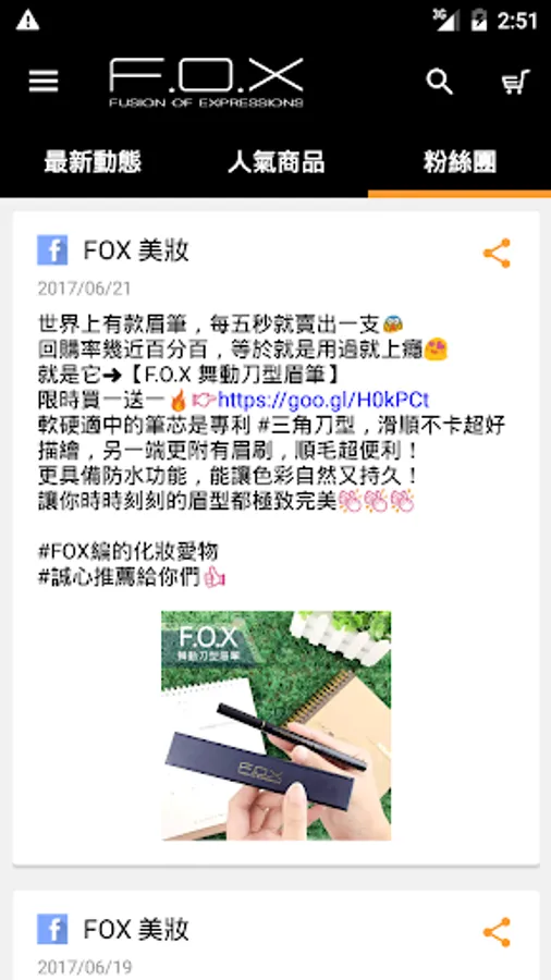 掌握時下最流行的彩妝保養資訊,快下載 F.O.X 美妝 購物APP,