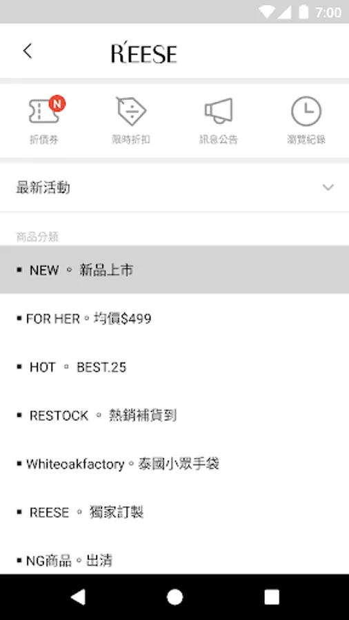 REESE 不定期推出限定折扣,APP會自動推播新品訊息,讓你不再錯過任何優惠活動