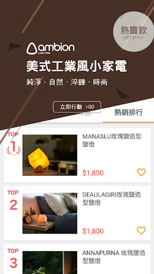 Ambion Lighting將不定時更新新產品,提供您最新最具設計感的鹽燈。