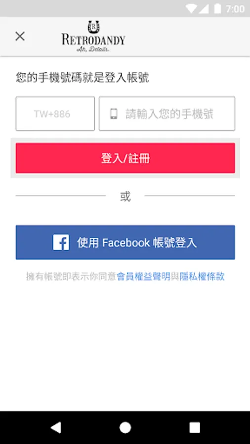 *會員登入:使用Facebook或是手機號碼可輕鬆加入會員