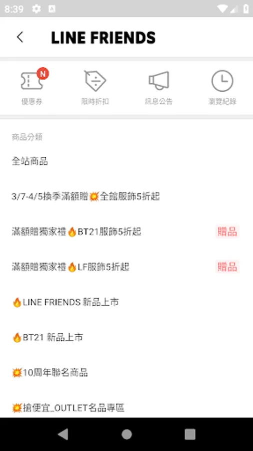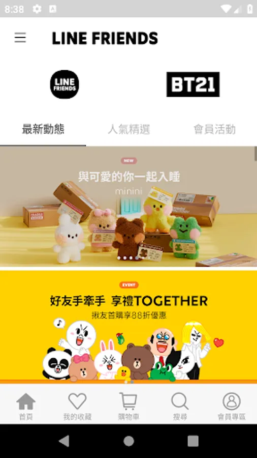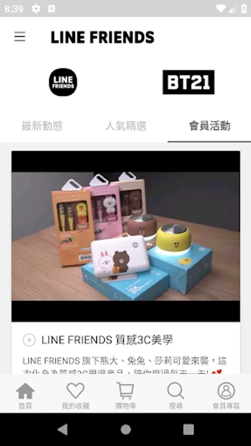 LINE FRIENDS以親近大眾、引發共嗚的模樣帶給使用者歡笑。率真自由奔放、超有魅力的LINE FRIENDS與BT21的角色們,走出行動裝置、更貼近大眾日常生活。LINE FRIENDS商城-多樣化商品,官方APP不定時推出限定優惠!APP會自動推播訊息,讓你不再錯過任何好康商品。