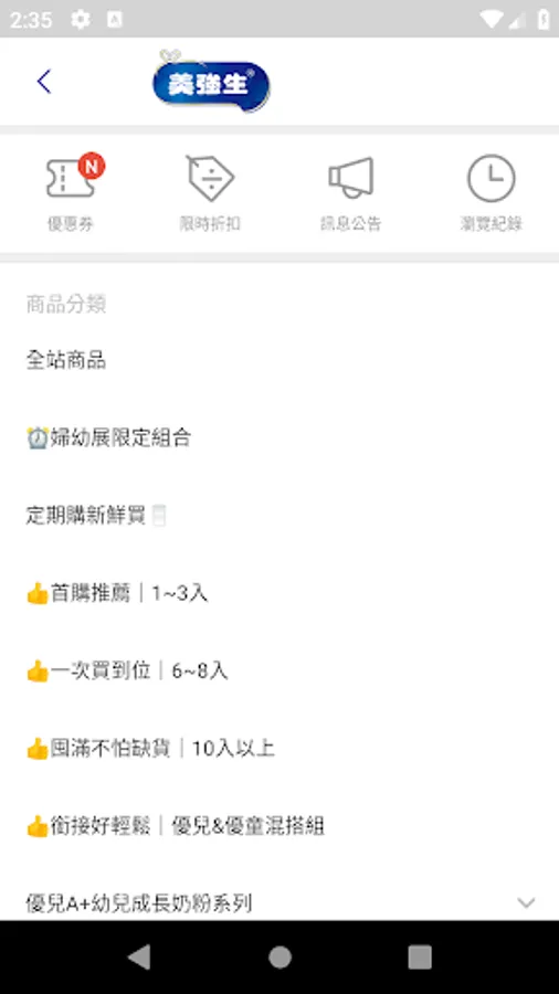 美強生品牌購為美強生營養食品公司的直營購物APP,不定時推出限時優惠,APP會自動推播訊息,讓你不再錯過任何美強生的好康活動!除了優惠通知,我們同時還會提供您關於美強生產品的小知識以及實用的資訊,成為您與小寶貝在成長路上的好幫手!