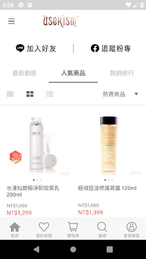 userISM分效美療第一品牌,全新行動購物官網上線,立即登入享會員獨家優惠,最新產品資訊與活動將不定期驚喜推播,讓你24H購物不打烊。