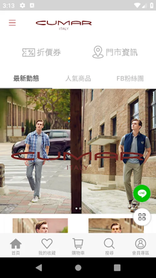 cumar休閒男裝官方網路直營APP,趕快下載接收最新商品優惠資訊,領取獨家網路商城優惠券及門市券!