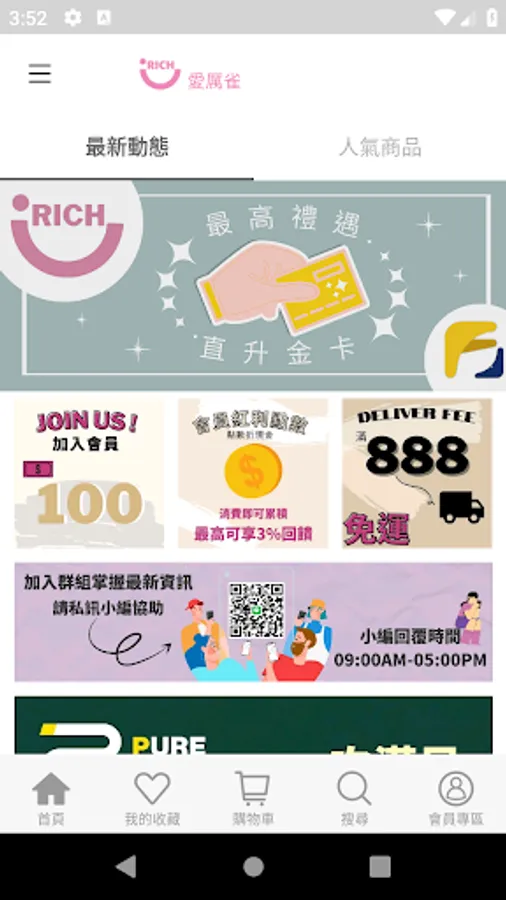 輕鬆購物就逛iRICH、累積/抵點數、領取好康!