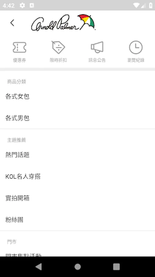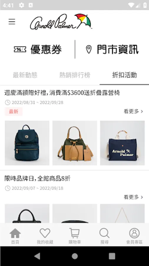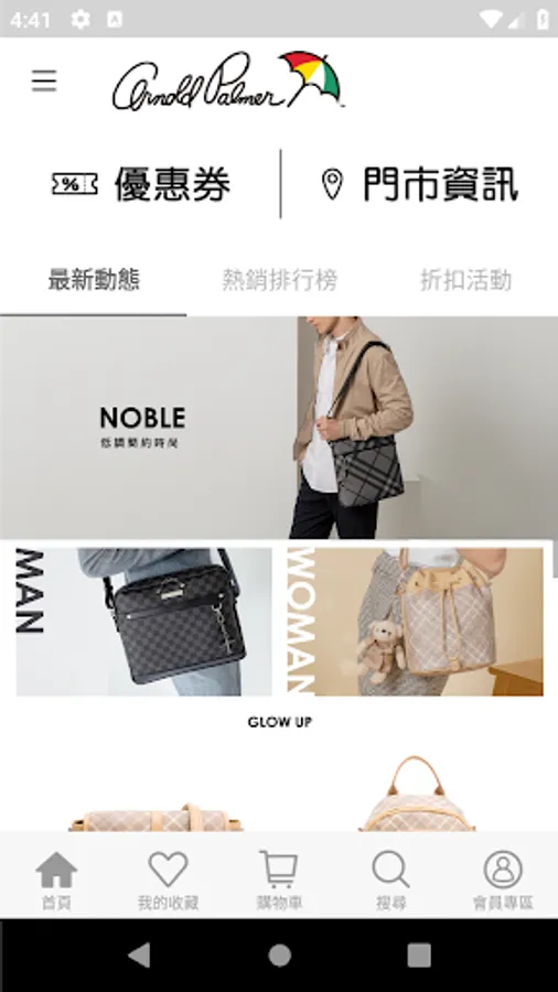Arnold Palmer Bag Taiwan's official App, providing online shopping and the most real-time event information and discounts in Taiwan, allowing you to keep abreast of brand trends!