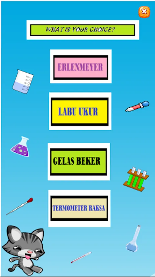 Kumbis Lab Chem is a game that invites users to recognize the tools in the chemistry laboratory in a fun way