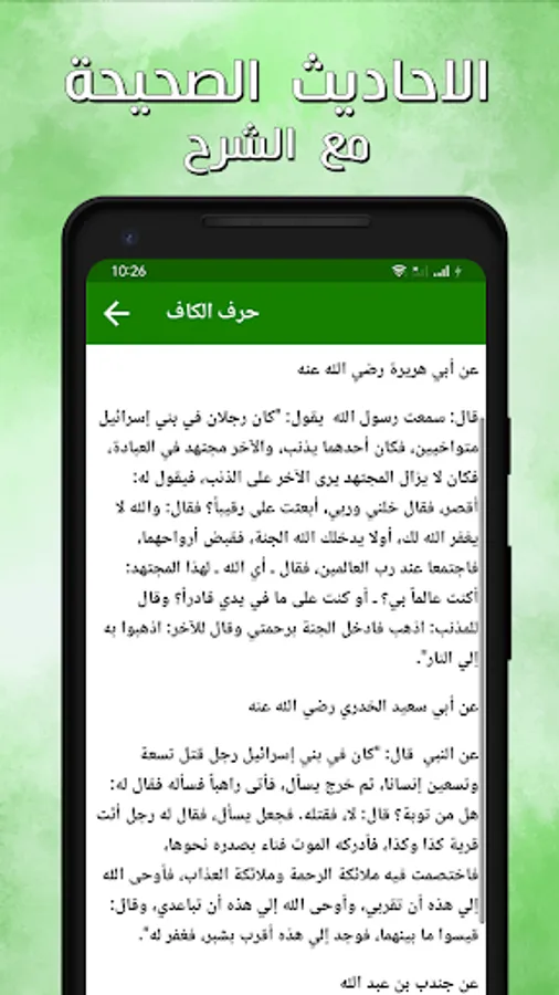 We present to you the application of the entire hadiths of the Messenger and their interpretation through complete books of Sahih al-Bukhari and Muslim and its interpretation without the Internet, and audio prophetic hadiths that include the most beautiful hadiths of the Messenger and the Prophet of God, in addition to an electronic rosary for the remembrance of God. The authentic hadith is one of the terms of the science of hadith, and by it it may mean the mutawatir, the saheeh in and of itself, the saheeh for others, and the good.