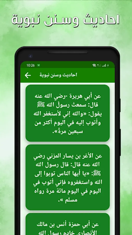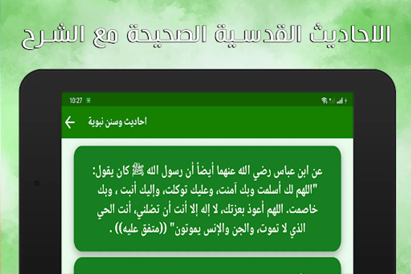 This application is rich and useful, enabling you to learn more about the hadiths of the Messenger, may God’s prayers and peace be upon him, every hour, as Muslims, ancient and modern, cared about it as the curriculum. We hope that we will always live up to your expectations and that the program of the Holy Prophetic Hadiths without the Internet, in audio and video, will provide you with the necessary information that you are looking for, and thank you for your positive interaction.