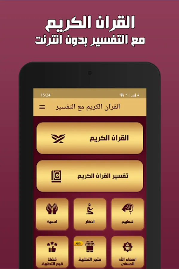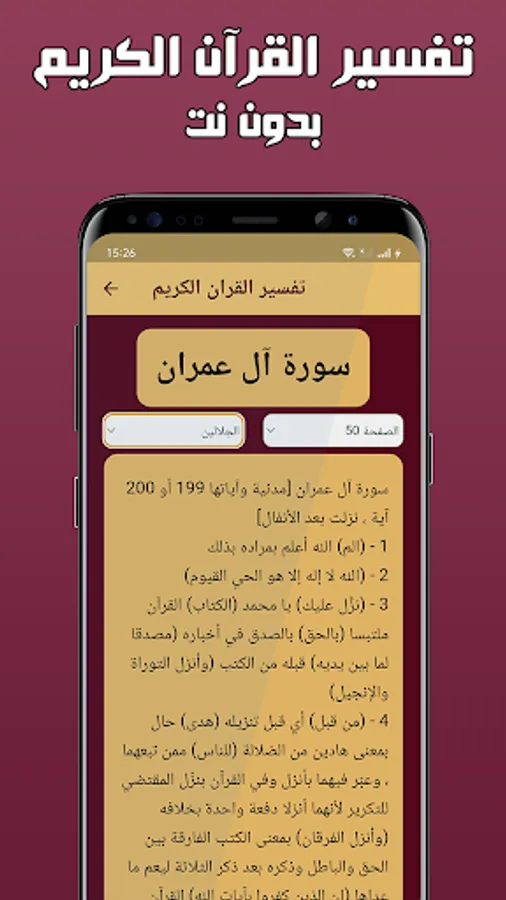 The Holy Qur’an without internet with interpretation offers you an identical copy of the paper Qur’an with a clear font and the background color of the pages is comfortable for the eye in addition to the feature of searching, marking, the index of the surahs, the interpretation that explains every surah, every page and every verse of the Book of God according to the brief interpretation, Saadi, the facilitator , Ibn Katheer and the Majestic, and do not forget the daily supplications and remembrances and the electronic rosary to take with you wherever you go without the need for the Internet.